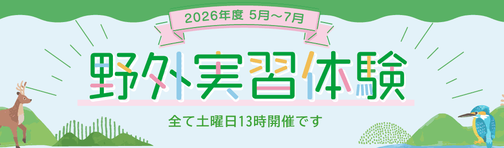 この実習では有機農業研修を行っている、里山の有機水田の周りで観察を行います。カエルやサンショウウオの産卵、野鳥の観察などを行います。この日は農業総合研究室で田植えを行っていますので、学生の実習風景も見学できますよ!