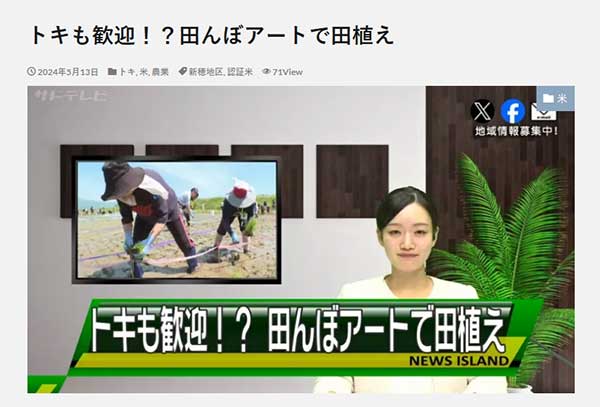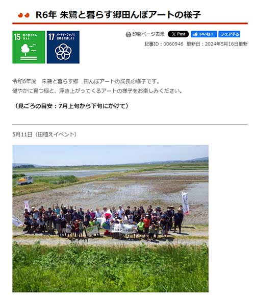 朱鷺と暮らす郷づくり推進協議会(事務局:佐渡市農業政策課)が、朱鷺認証米のPRを目的に、「朱鷺と暮らす郷田んぼアート」を毎年実施されています。